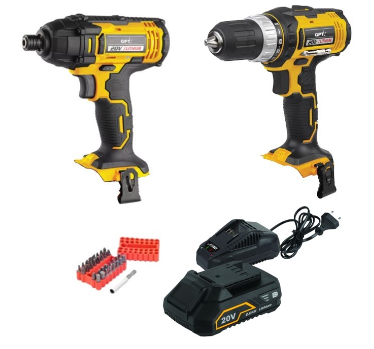 סט אימפקט ומברגה / מקדחה + סוללה 2A ומטען מבית GPT (כולל ביטים)