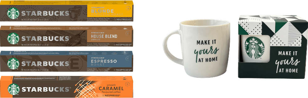 מארז קפסולות אספרסו בלונד/האוס בלנד/אספרסו/קרמל + ספל מתנה מבית Starbucks – סה"כ 40 קפסולות + ספל 260 מ"ל