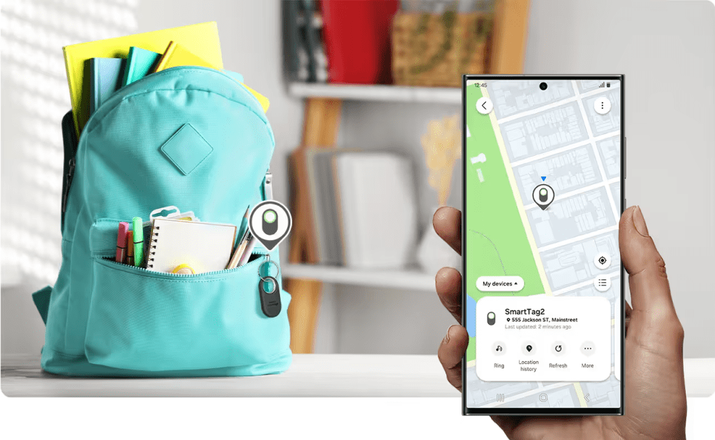 לשמור את הדברים החשובים קרוב אליכם. עם חיי סוללה משופרים של עד 500 ימים, דירוג IP67 בעמידות לאבק ולמים, תכונות "תצוגת מצפן" ו"חיפוש בקרבת מקום" למציאה זורמת, ה-Galaxy SmartTag2 משגיח על מיקומם של חפצי הערך שלכם ומסייע בבקרה על מכשירי IoT שונים בלחיצה פשוטה.