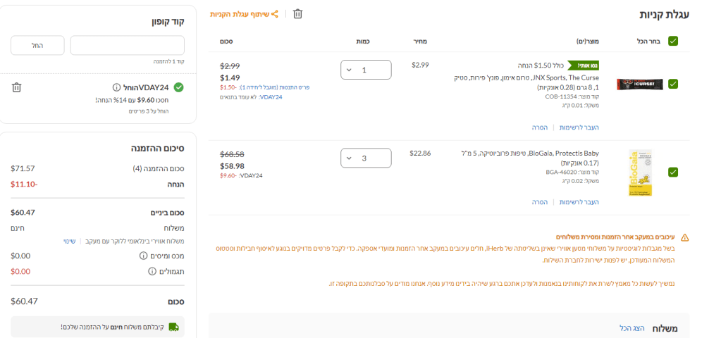 מוסיפים לעגלה 3 בקבוקוני ביוגאיה (בשגרה אחד עולה סביב 120 ש"ח בכל בית מרקחת) – https://iherb.prf.hn/l/jXnNA20