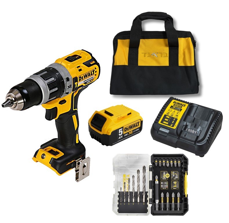 מקדחה רוטטת דיוולט דגם DCD796 + סוללה 5A ומטען + סט 19 אביזרים סטנלי + תיק!