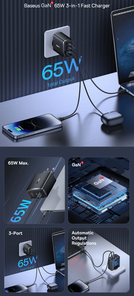 מטען קיר מהיר Baseus 65W GAN